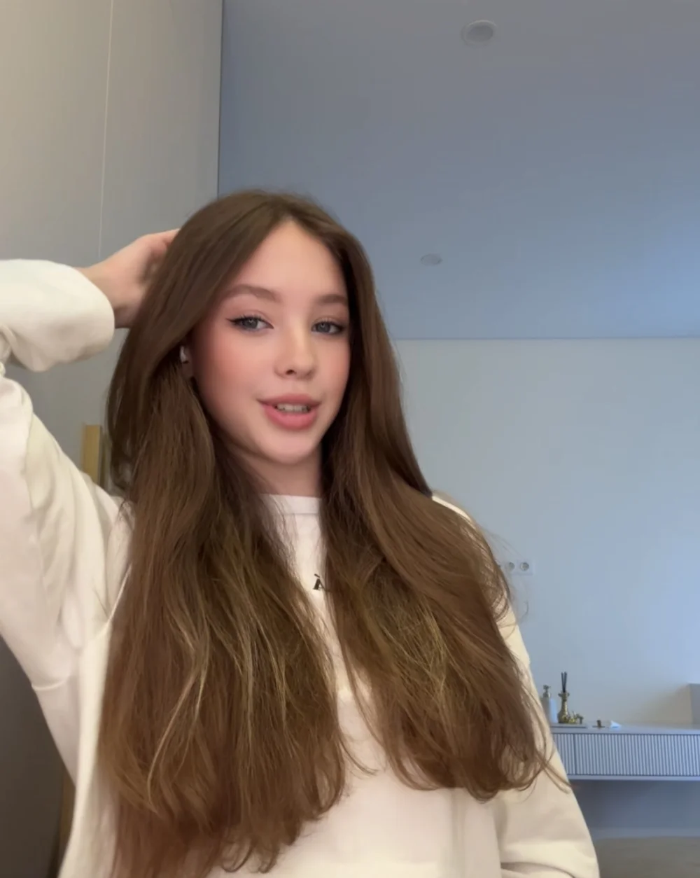 шрамы, Изящная улыбка, шелковистые волосы, которые могут быть как волнистыми, так и прямыми, и стройные длинные ноги.