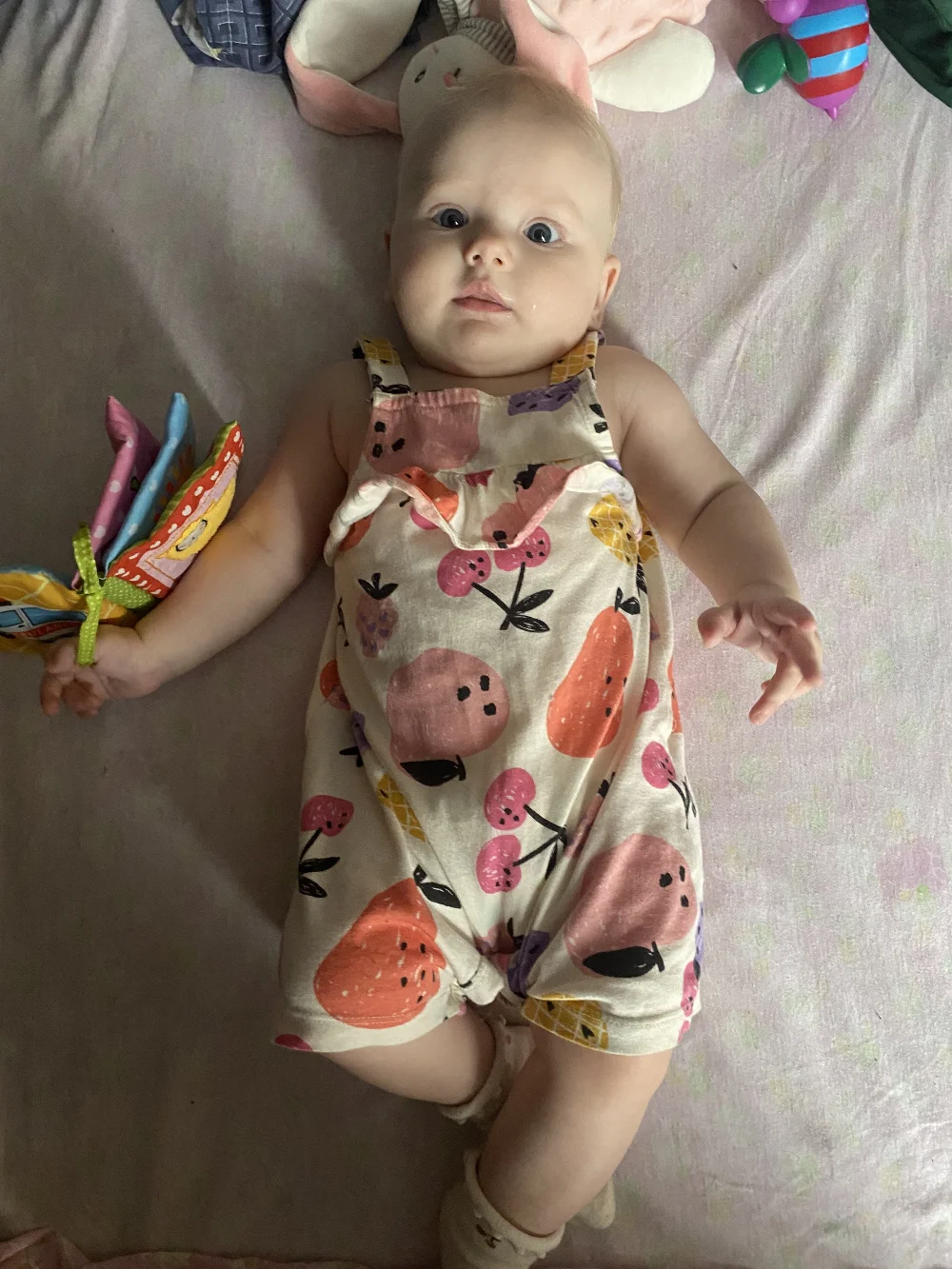 Мне 5 месяцев, я активная, любознательная, веселая, хорошо иду на контакт. Уверенно держу голову, переворачиваюсь, начинаю ползать, держу игрушки, перемещаю предметы, улыбчивая, люблю смеяться, плавать. Есть загран паспорт старого образца с 29.10.2025 г.
