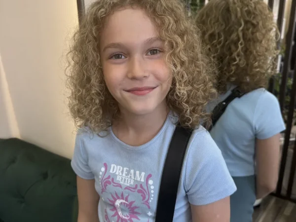 Веселая кудрявая девочка, люблю много разговаривать. Занимаюсь каратэ, занимала призовые места