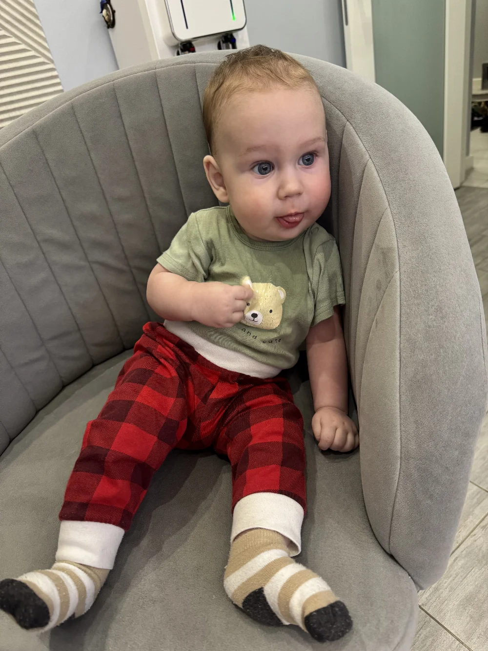 Умеет сидеть, начинает ползать, реагирует на голос и жесты. Хорошо ладит с незнакомыми людьми и идёт на контакт. Опыта участия в съёмках нет