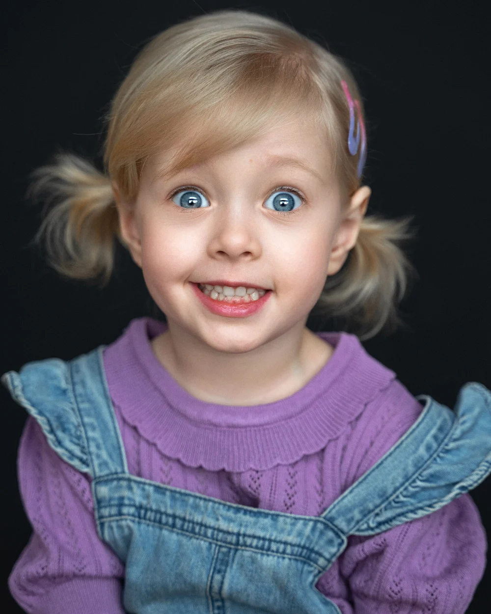 Активная, послушная, с опытом съемок с 6-ти месяцев. Выдерживает длинные смены по 10-12 часов. Слышит и выполняет команды режиссера.