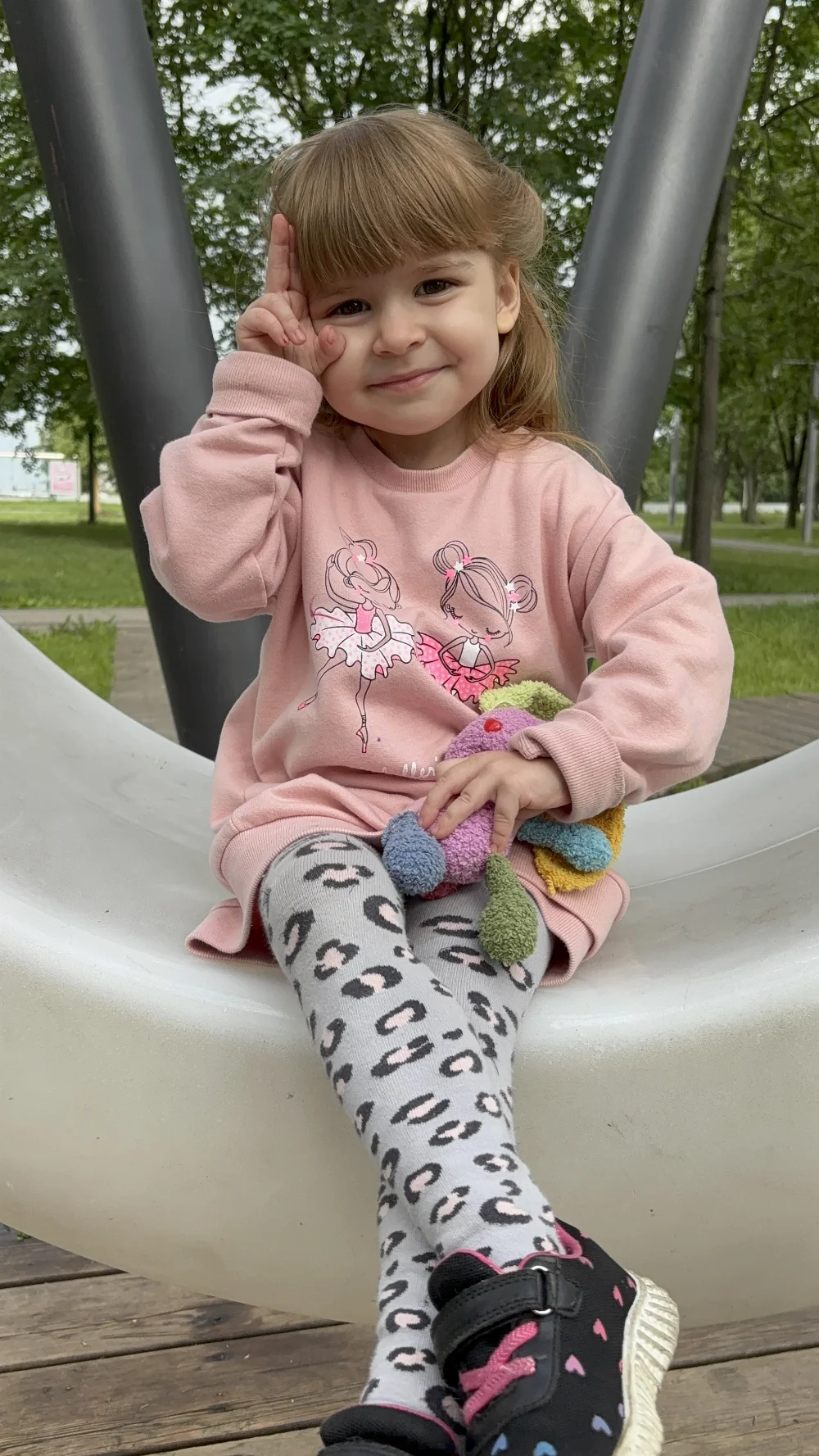 Арина любит фотографироваться, сниматься в видео, позировать, гримасничать, усидчивая, выполняет действия, которые нужно сделать. Жизнерадостная, открытая девочка.