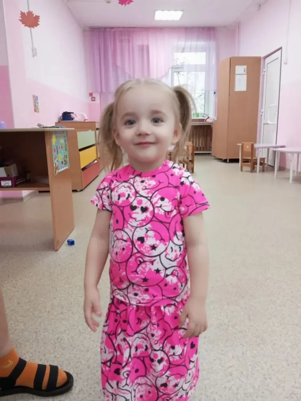 Девочка внимательна, способна повторять заданные ей физические движения и мимику. Легко контактирует с взрослыми людьми и детьми. Быстро адаптируется к новым условиям.