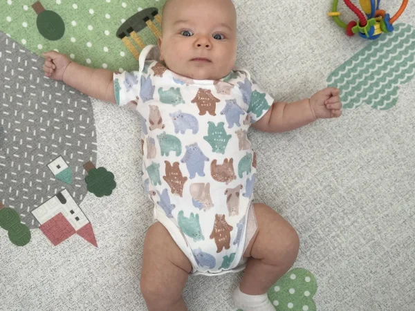 Реакции: Хорошо реагирует на звуки, свет, движение. Может долго удерживать внимание на интересных объектах.