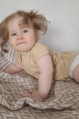 Легко адаптируется в новой обстановке, отвечает улыбкой на улыбку не только домочадцам, но и не знакомым людям.