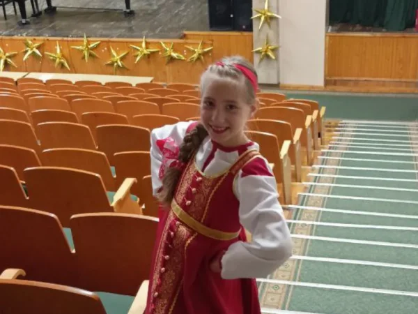 Я смелая, у меня подвижная мимика и красивая внешность. Я много выступаю на сцене и являюсь солисткой ансамбля, учусь в музыкальной школе, пою народные песни. Я мечтаю стать актрисой и артисткой. Ещё у меня есть очень талантливая сестра София. Мы с ней похожи.