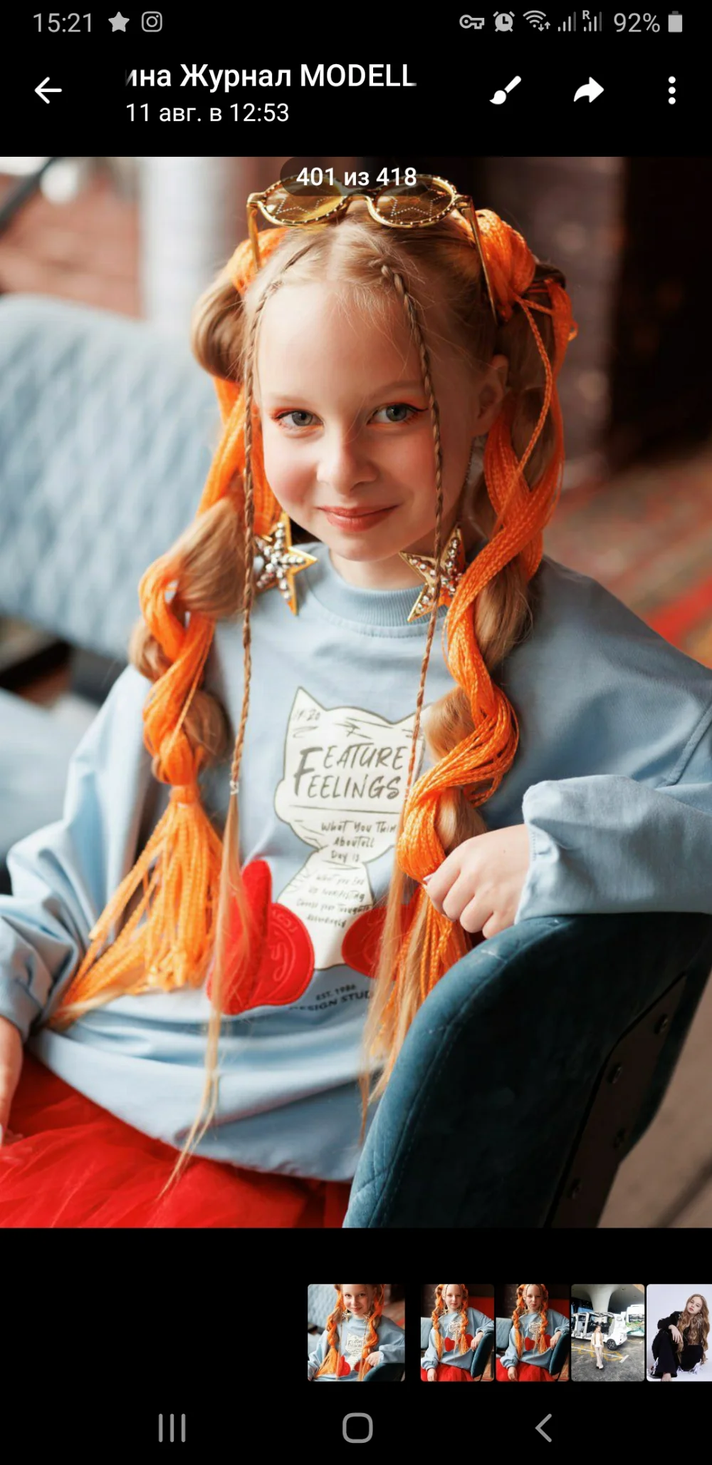 Я принимала участие в съёмках короткометражных фильмов (3 фильма). Постоянная модель модных показов и профессиональных фотосессий для журналов. Не стесняюсь камеры, ответственно подхожу к ролям, учу сценарии. Могу сама нанести макияж и сделать прическу быстро + собрать нужный лук в одежде. Моя мама - главный редактор глянцевого журнала и я уже с 2 лет с ней в творческой обстановке.