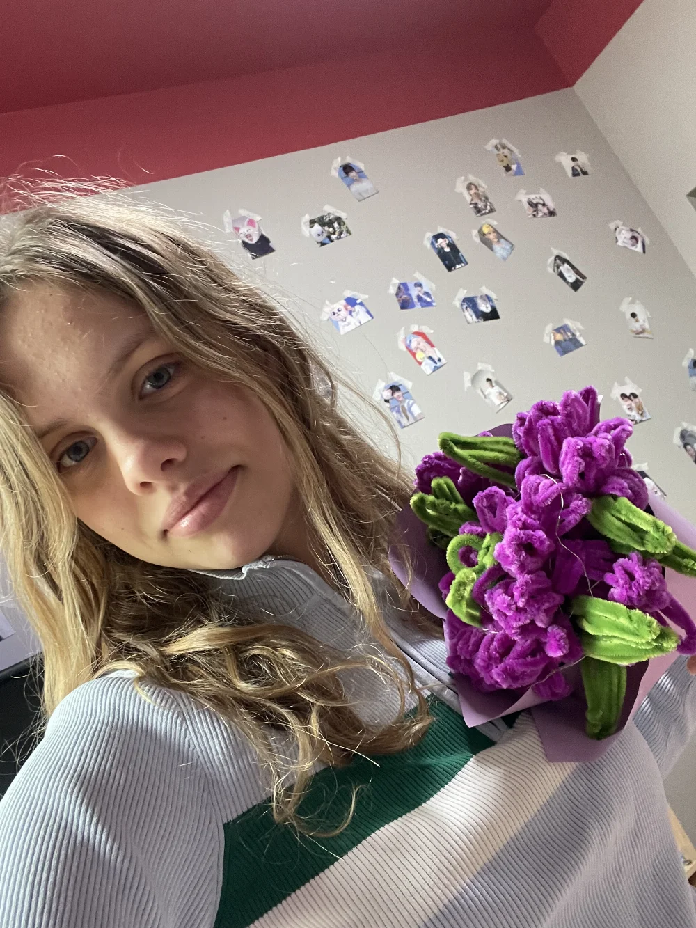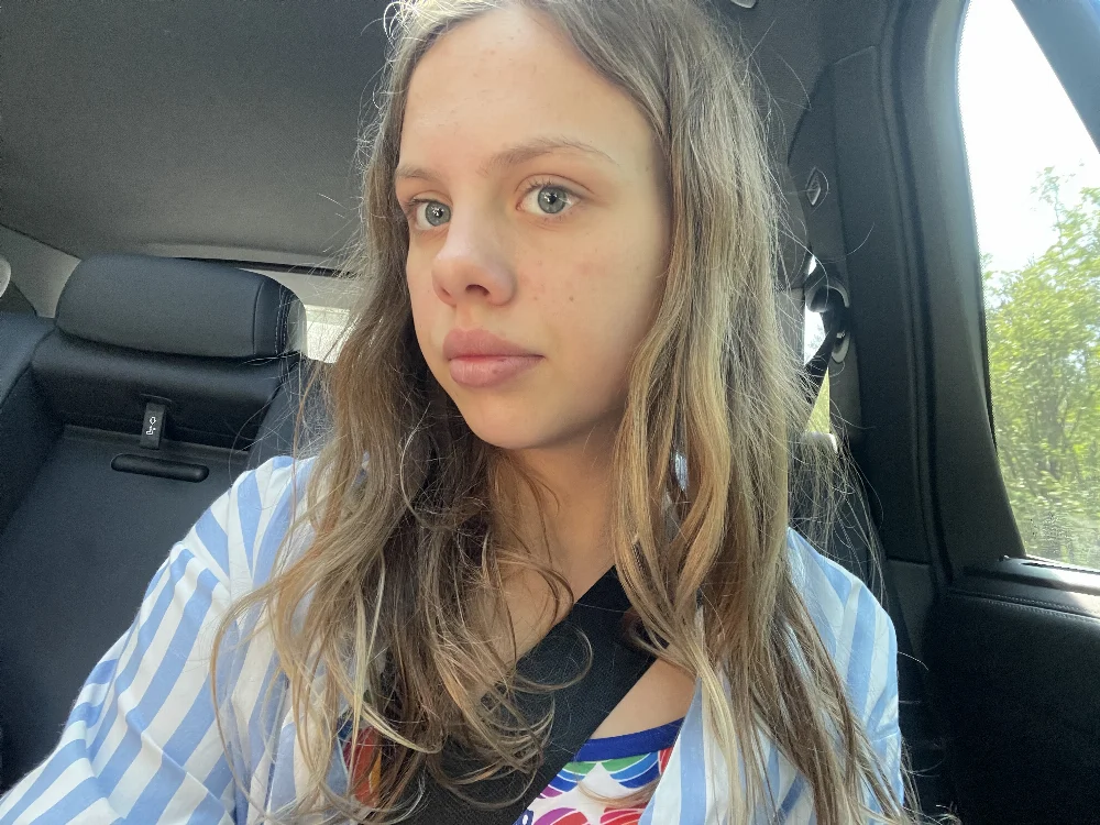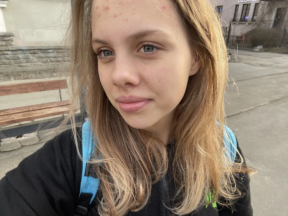 пухлые губы, ровные зубы, глаза хамелеон,вьющиеся волосы которые выгорают прядями, становлюсь почти белыми,большие глаза