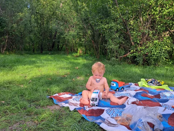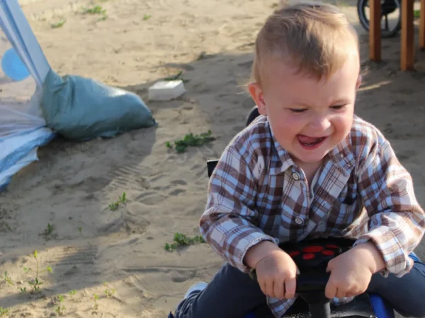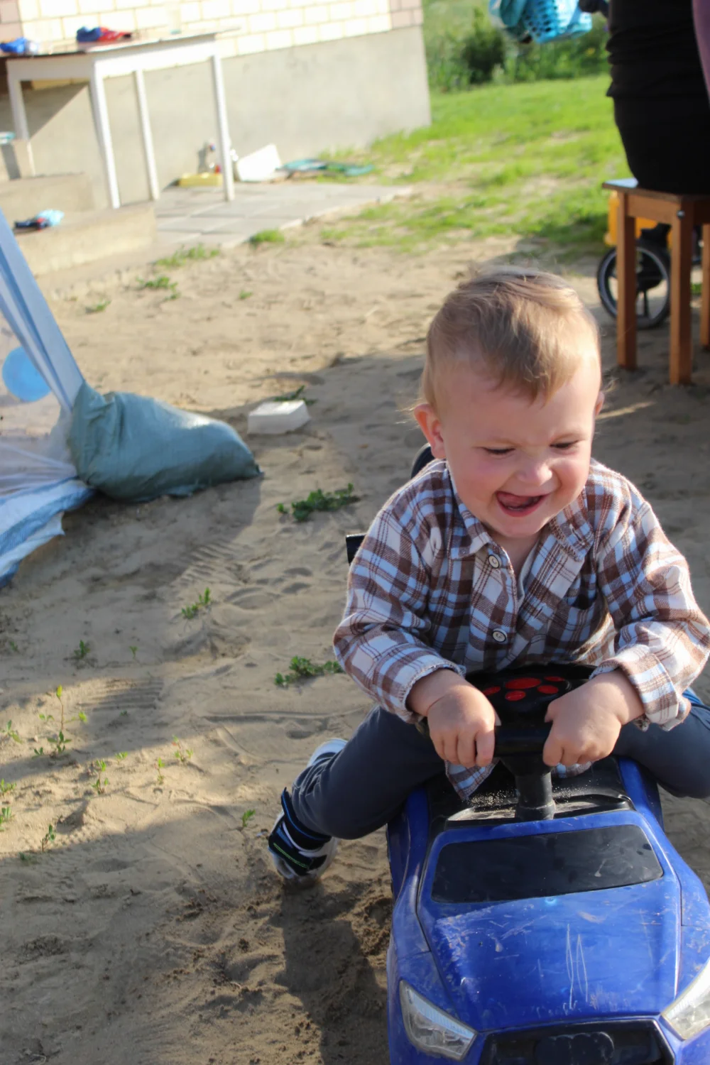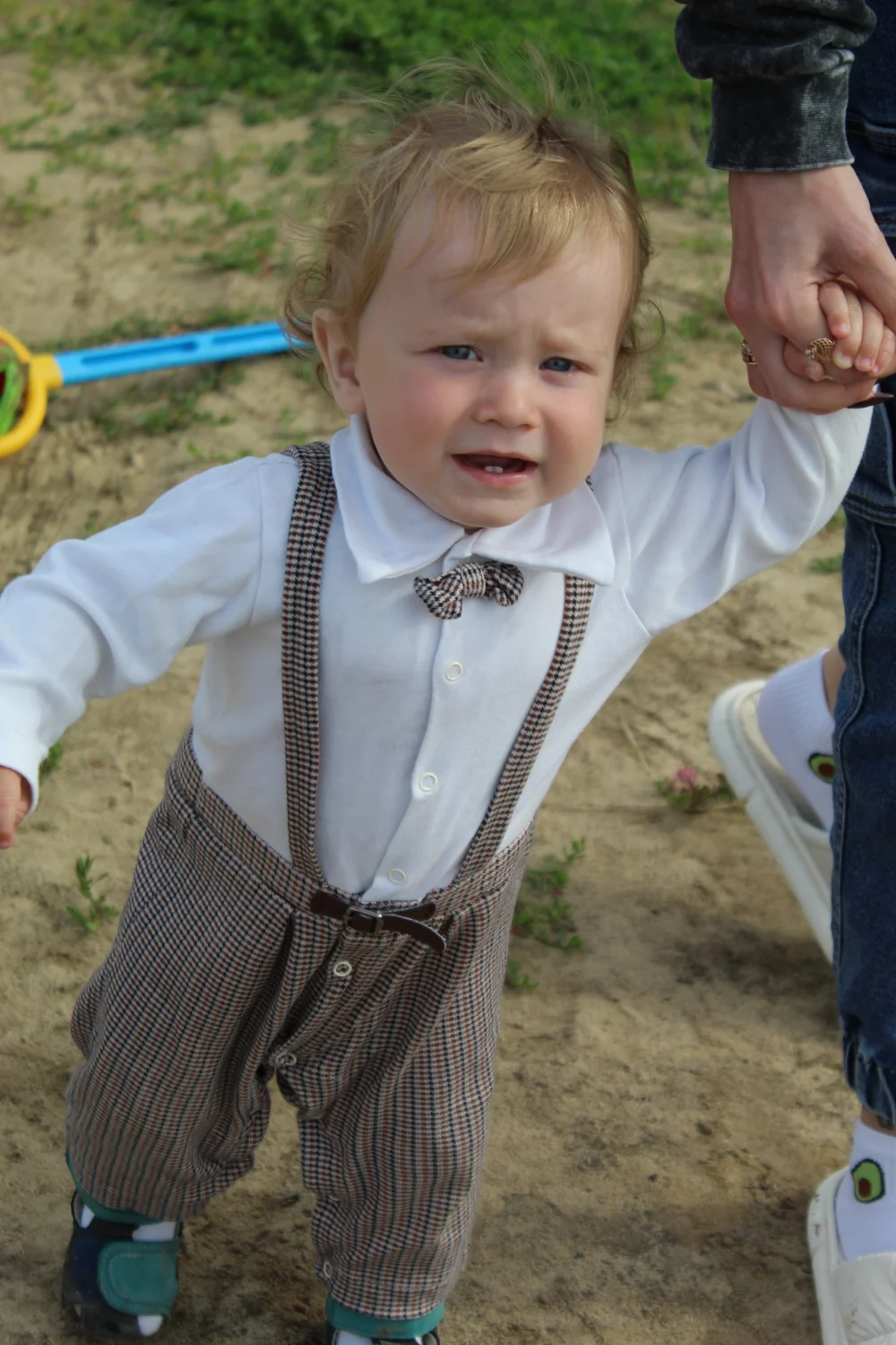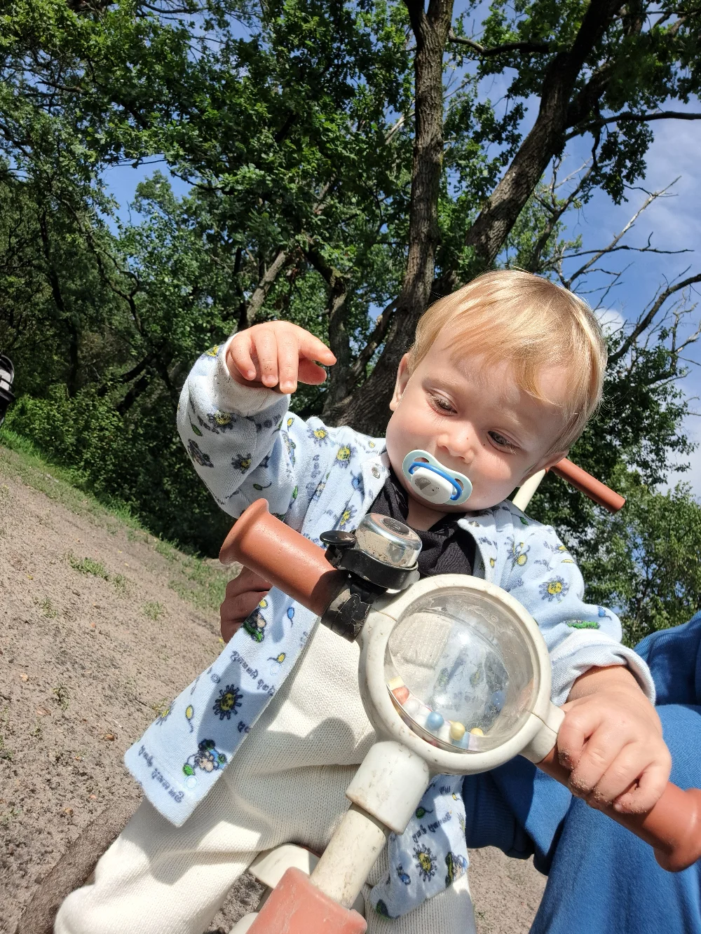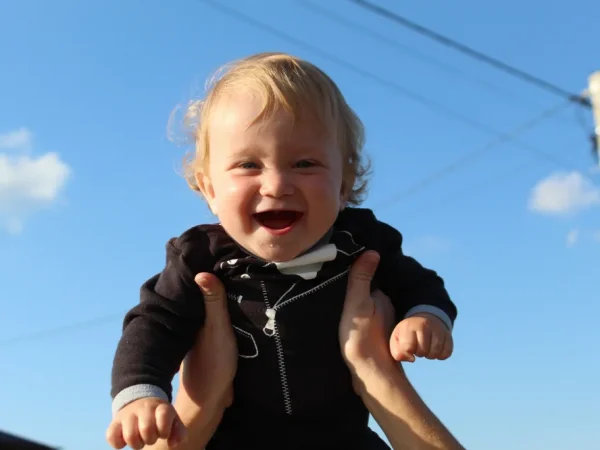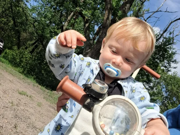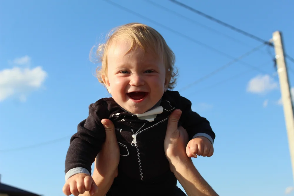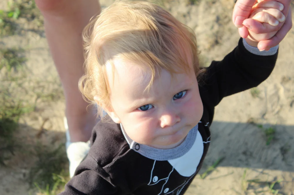 Очень красивый ребёнок, кудрявый блондин с голубыми глазами, улыбчивый и харизматичный
