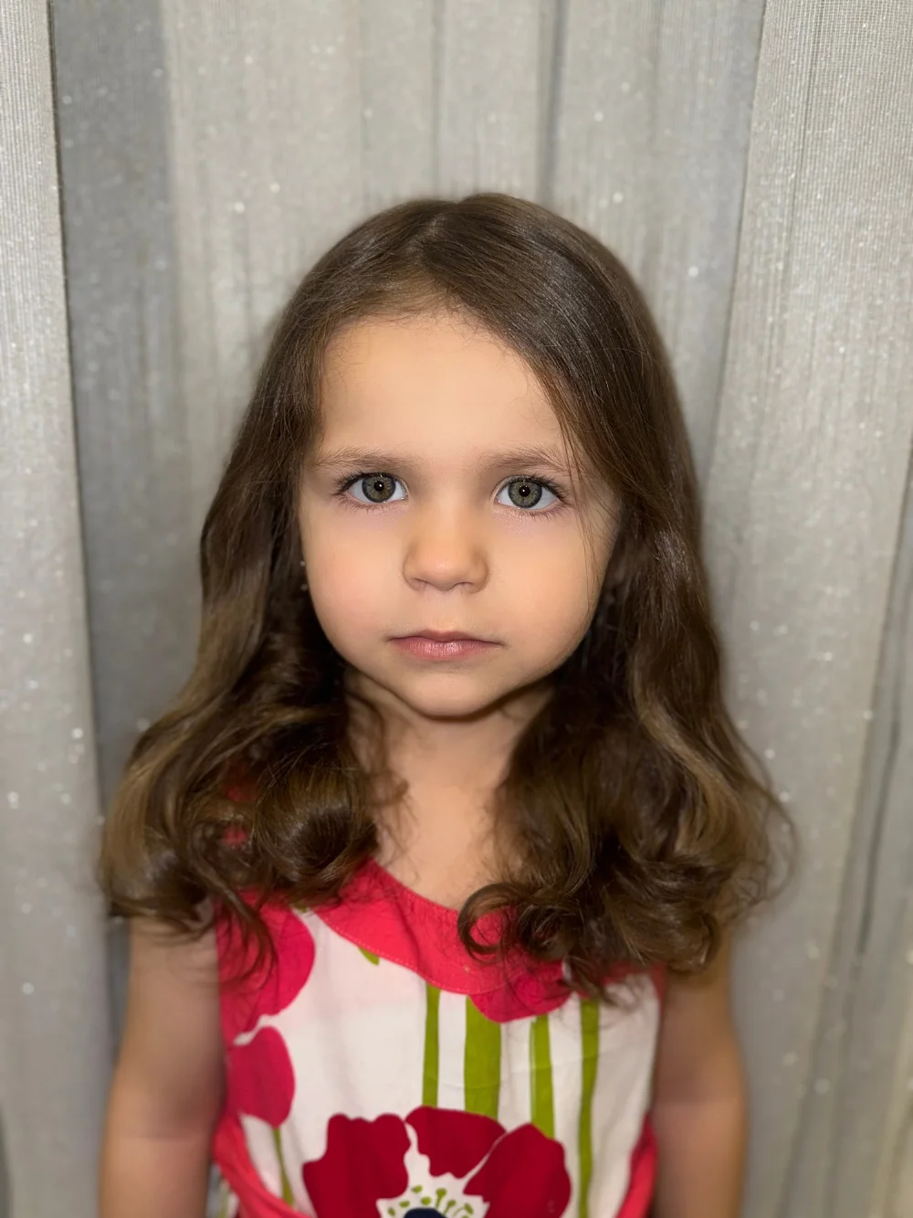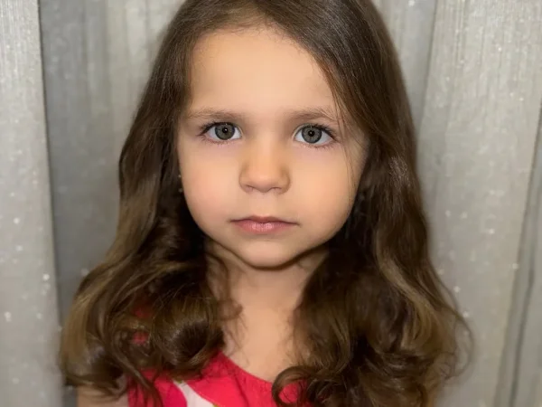 Длинные кудрявые от природы волосы, и зелено голубые большие глаза не остаются не замеченным.