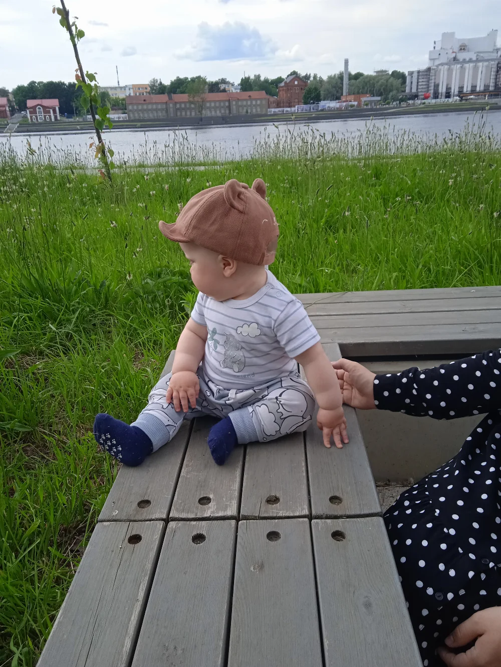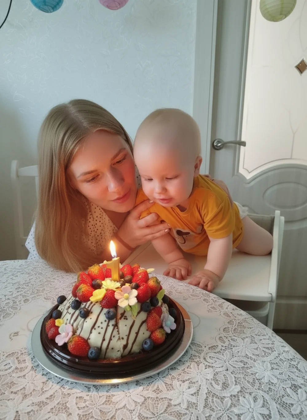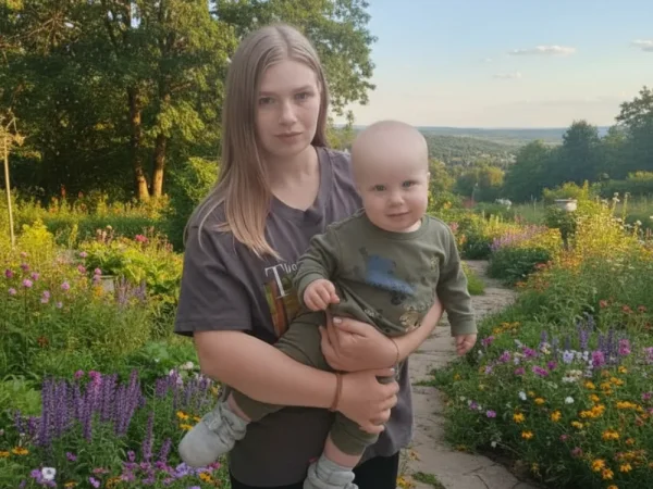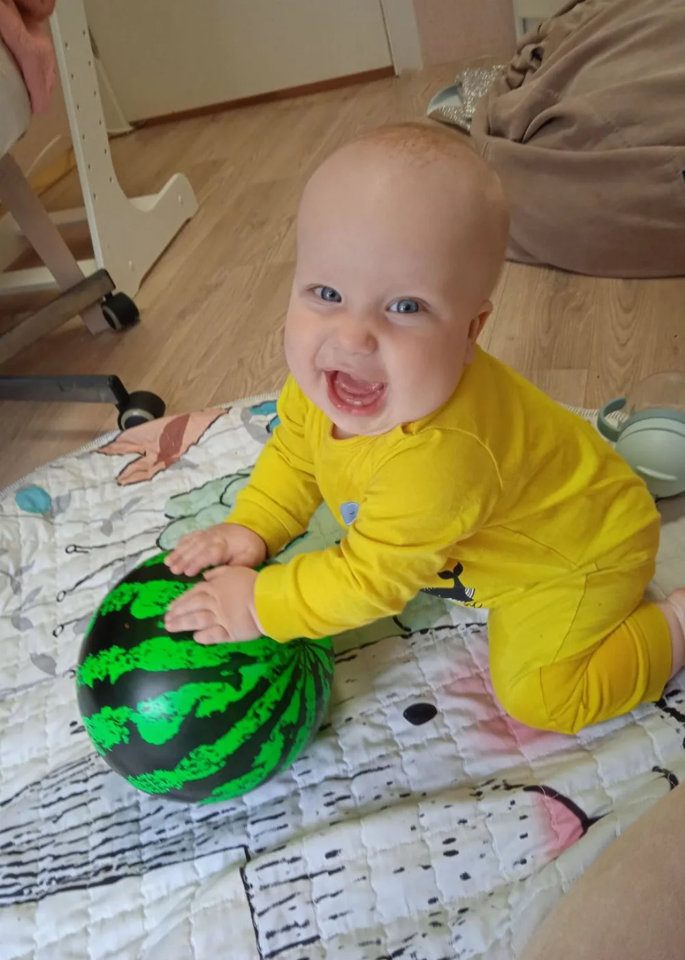 Милый, красивый малыш с ярко голубыми глазами и светлыми волосами. Очень улыбчивый