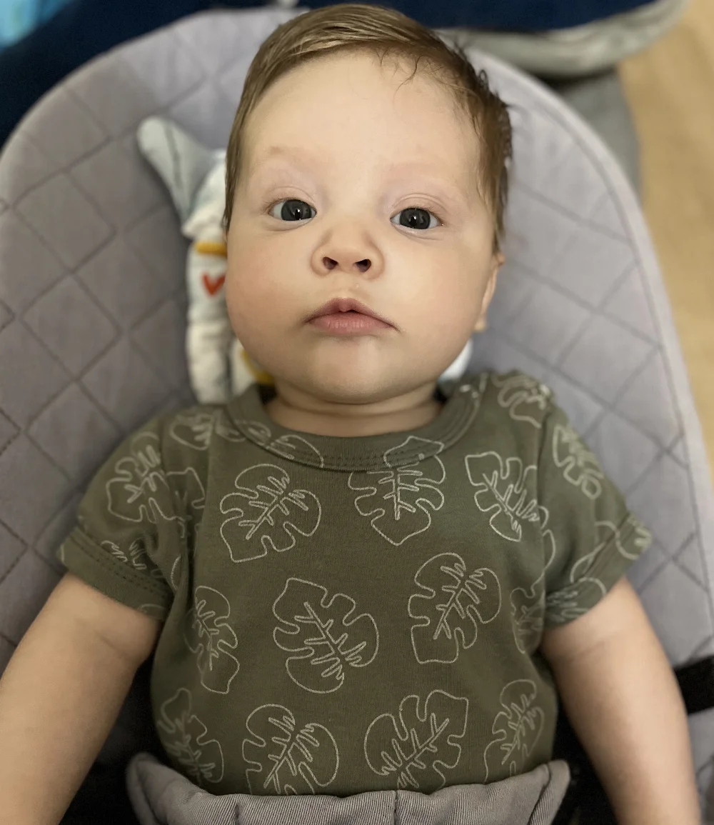 Наш четырёхмесячный бутуз с шикарной шапкой белокурых кудряшек и беззубой улыбкой, которая растопит любое сердце.