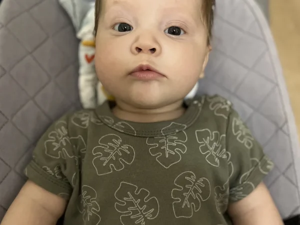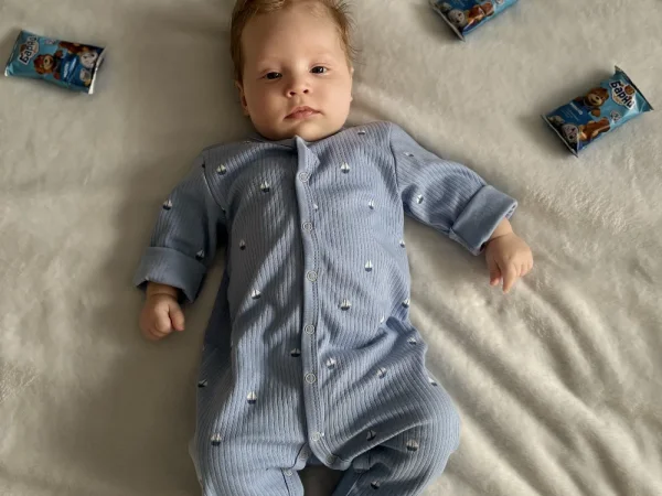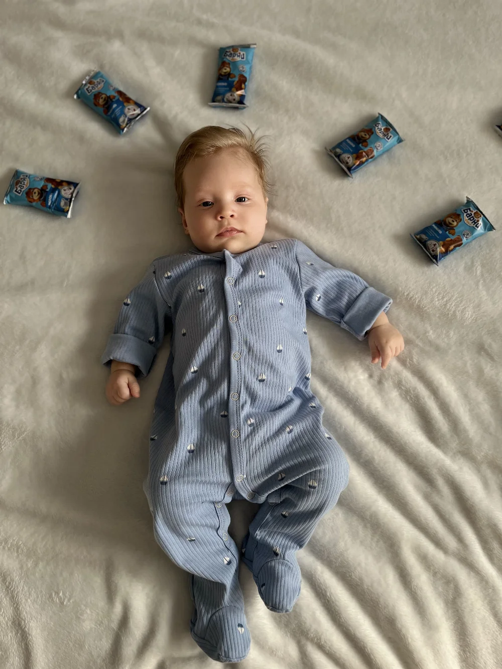 Он обожает «разговаривать»: гулит, агукает и издает множество звуков. Его светлые бровки удивлённо ползут вверх, а ротик открывается в форме буковки «О», когда он слышит новый звук.