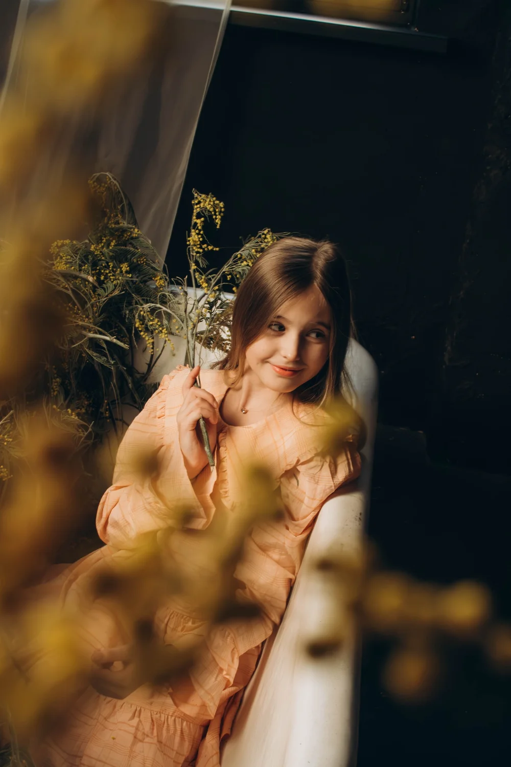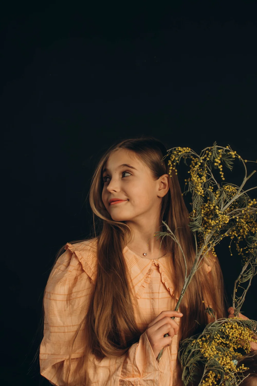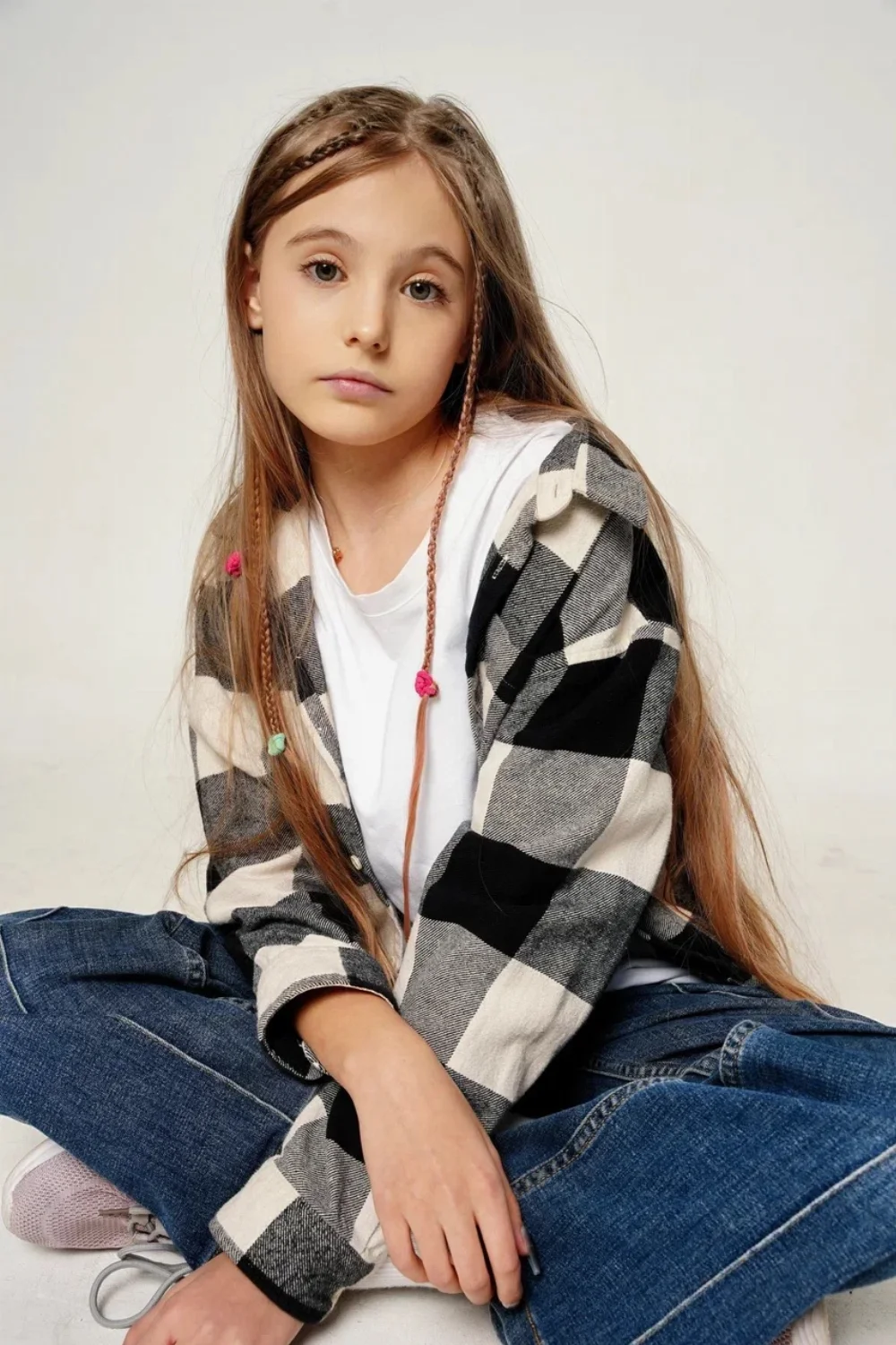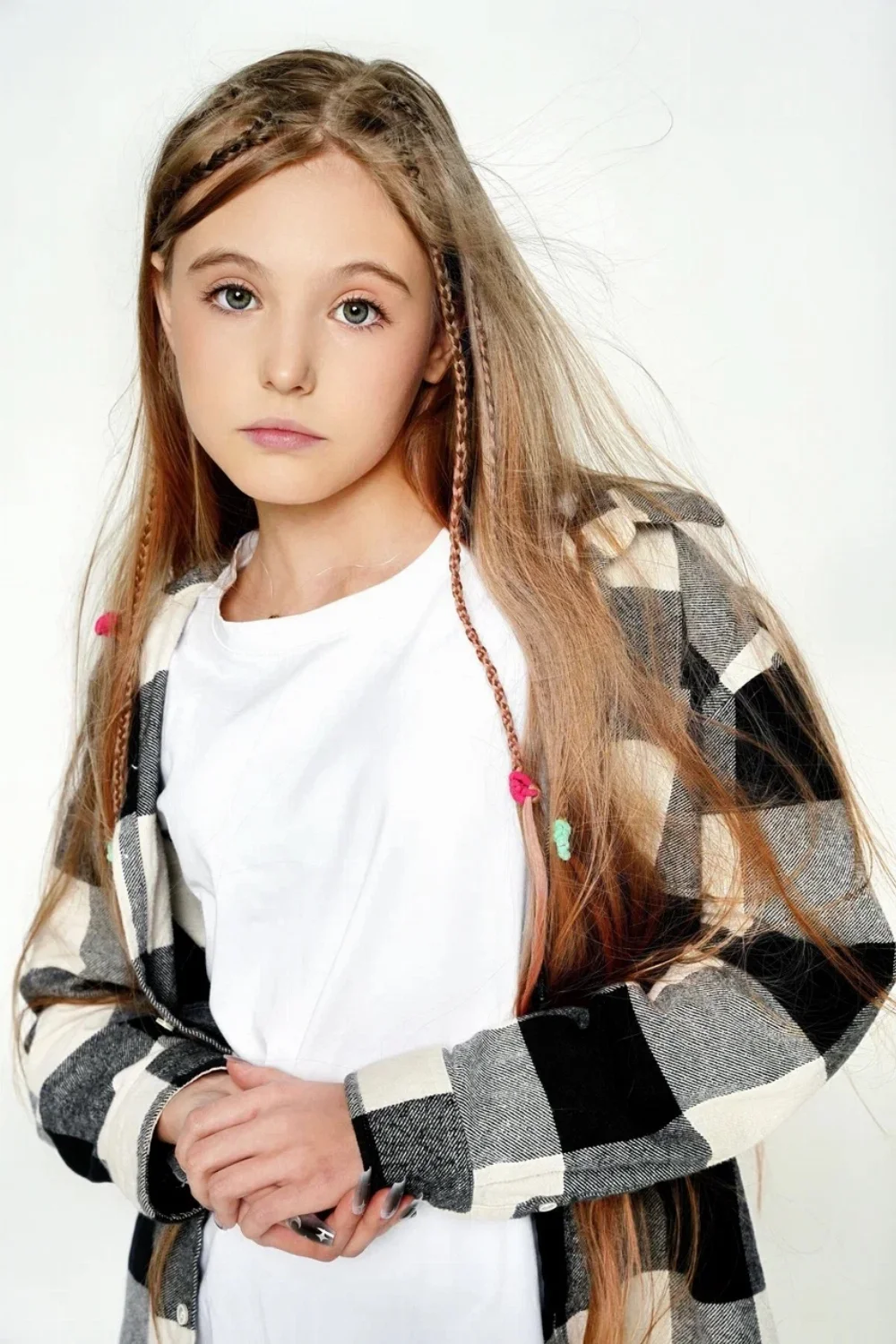длинные худые ноги, свой светлый цвет волос, волосы длинные - ниже поясницы.