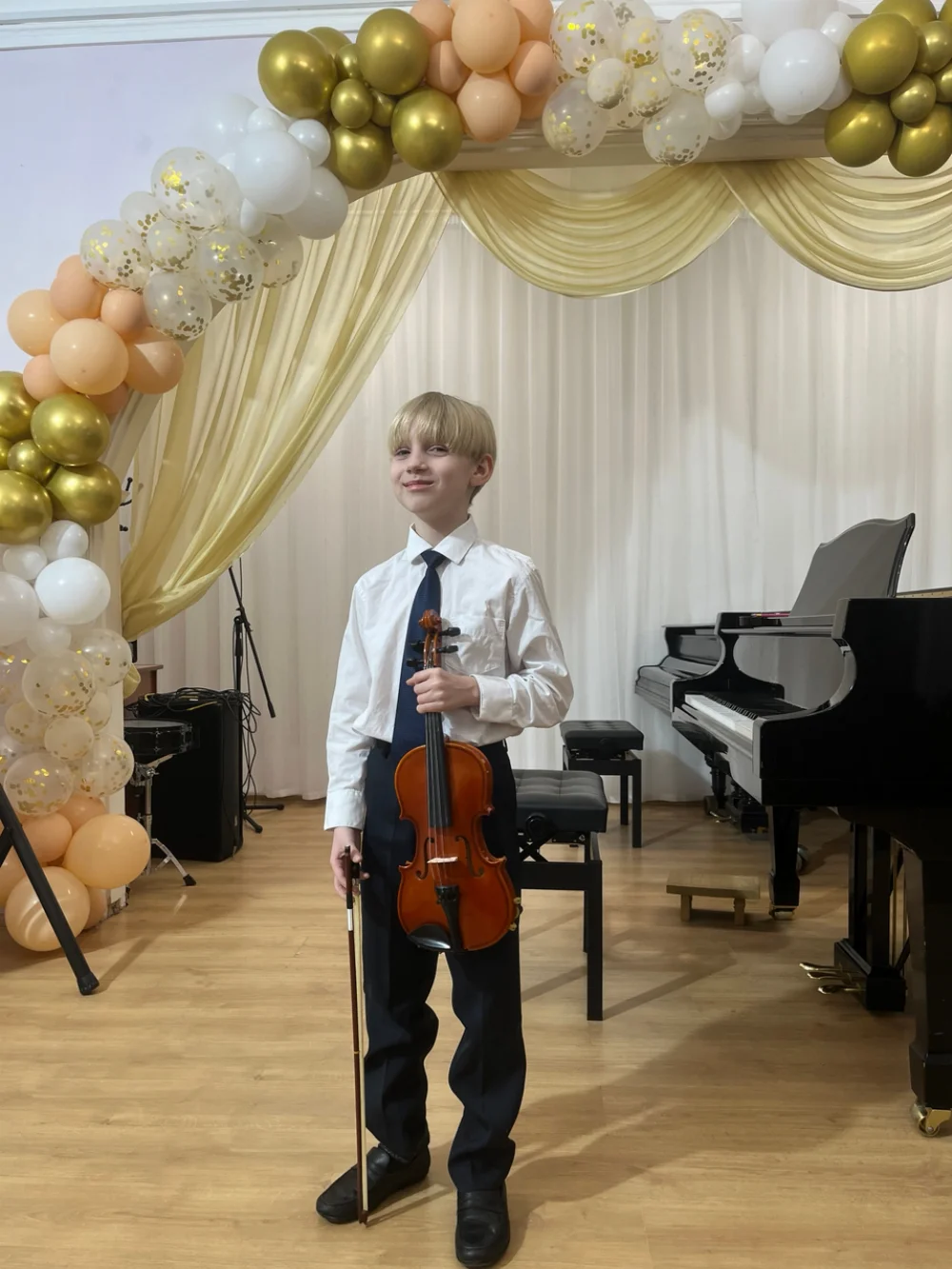 Играю на скрипке, пою, занимаюсь бальными танцами.