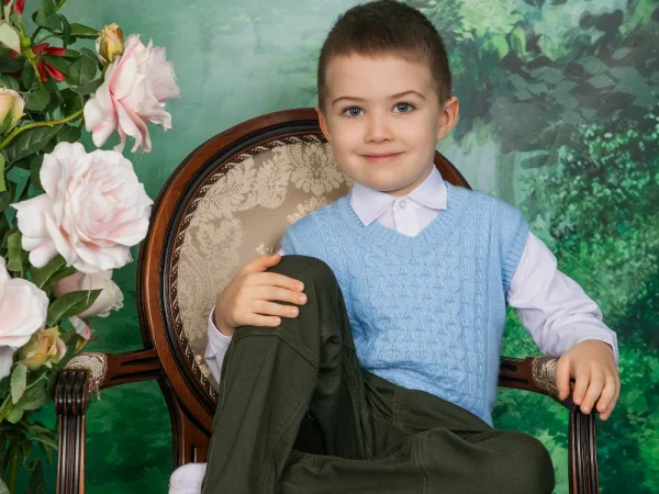 Яркий, артистичный, веселый, энергичный. Любит читать стихи, рисовать, танцевать. Победил в конкурсе чтецов в детскому саду в 4.5 года; победил в районном конкурсе рождественском в номинации "книжка-малышка" 2026.