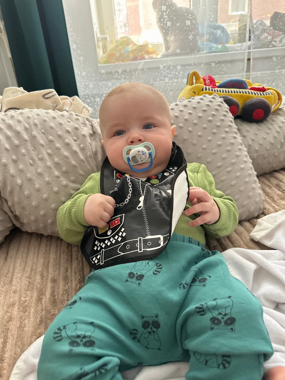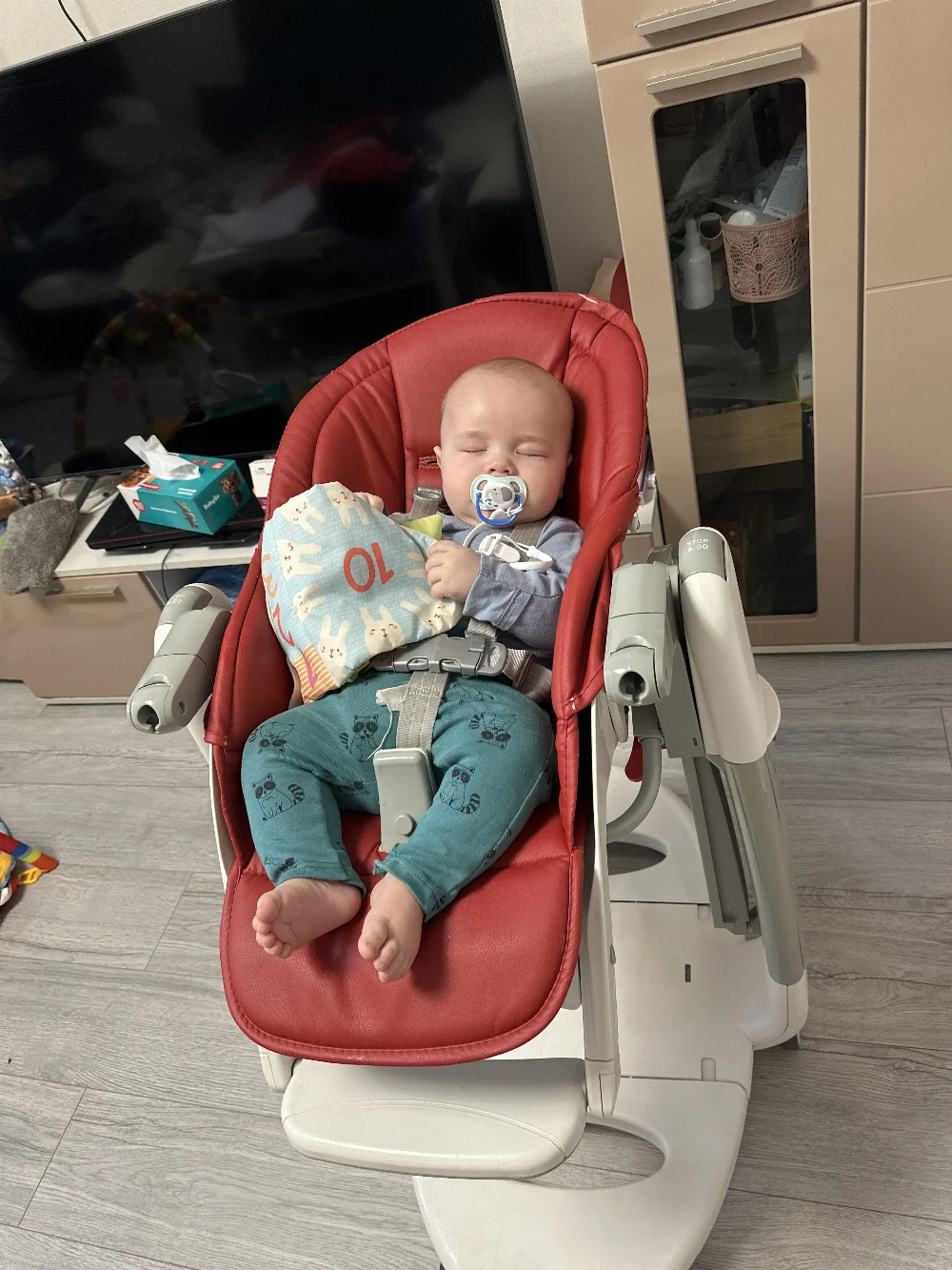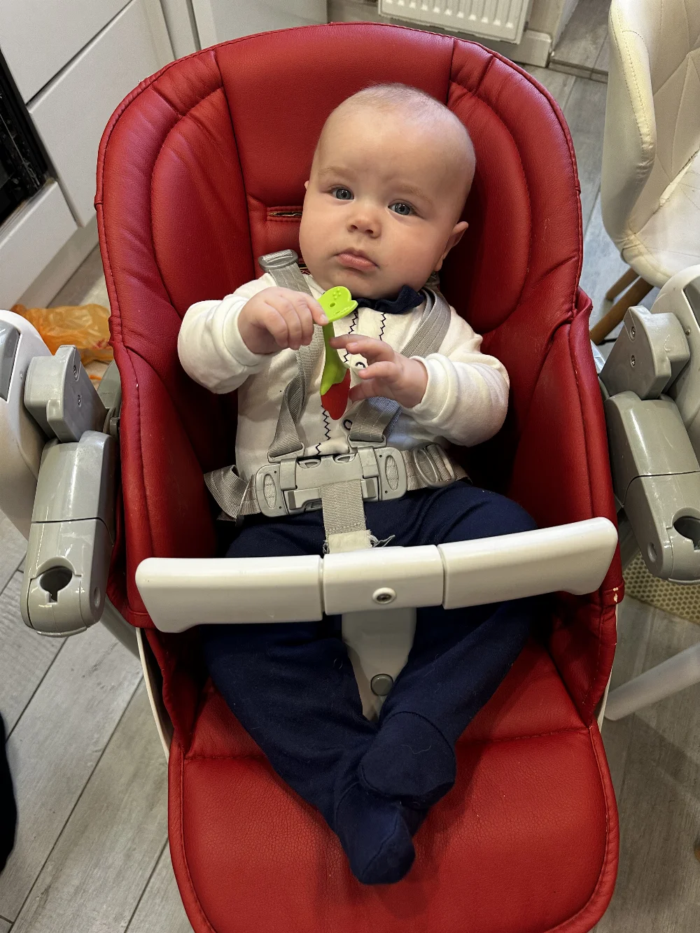 Очень веселый, улыбчивый, подвижный малыш. Не боится чужих людей, живые эмоции.