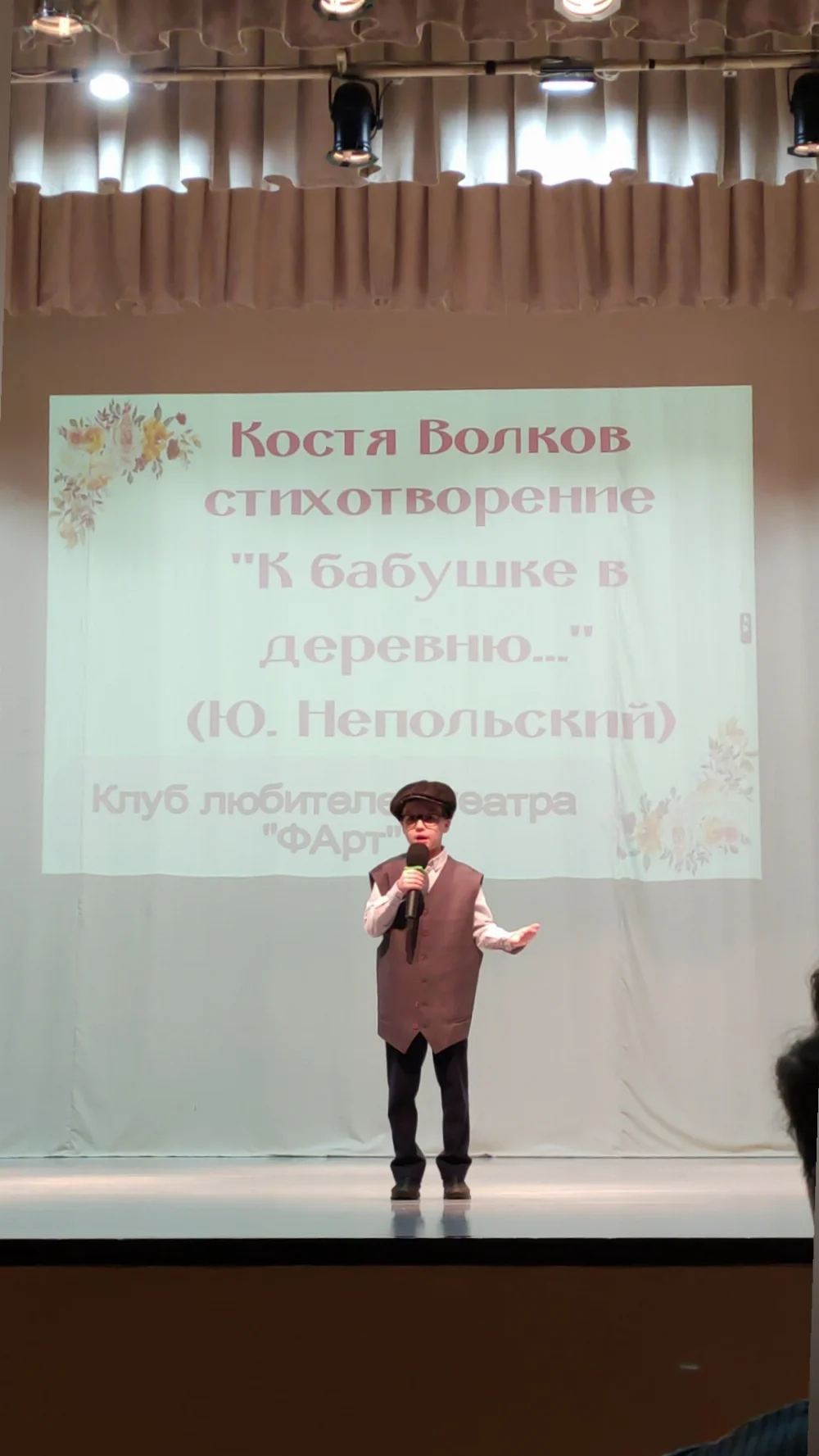 Хожу в театральную студию. Хожу на а английский с 4лет и гимнастика. Много читаю. 3 раза выступал в роли ведущего на празднике в ДК . Принимал участие в областном конкурсе, получили диплом лауреата 1 степени. Принимал участие в выступлении в новогодней сказке.