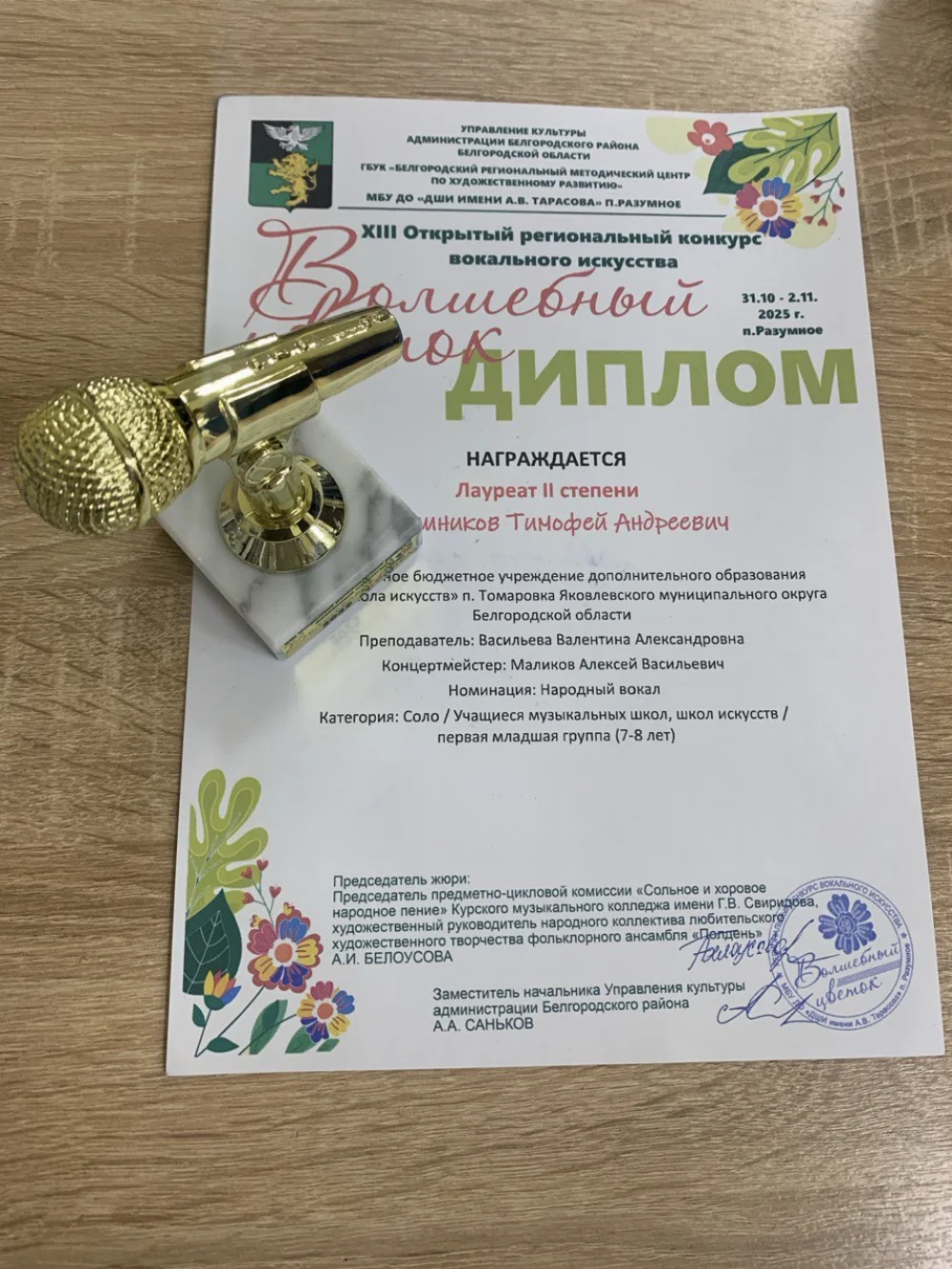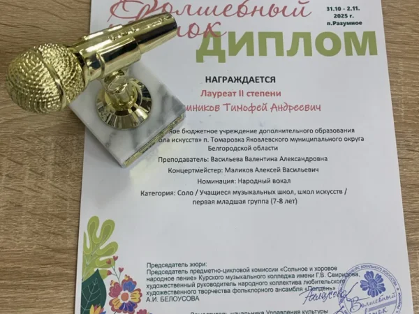 У меня хороший музыкальный слух. Я являюсь лауреатом региональных вокальных конкурсов.