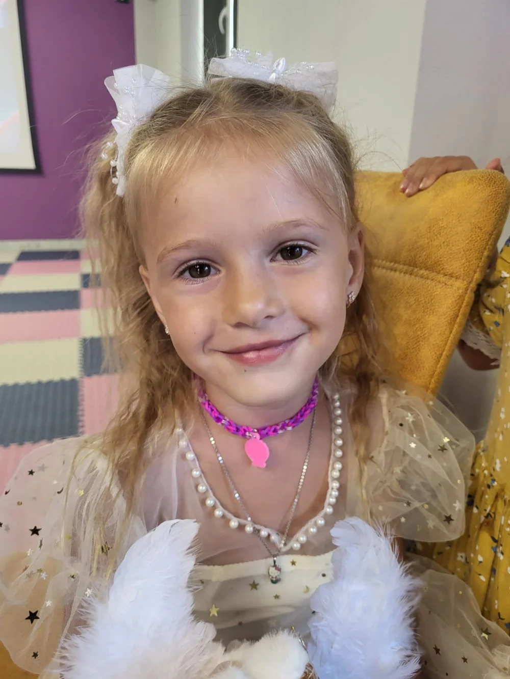 Меня зовут Вероника . Мне нравится играть. Когда начинаем с братиком дома беситься, бедные родители. Дедушка меня называет егозой. Я занимаюсь художественной гимнастикой. Я общительная и веселая девочка. Хочу сниматься в кино.