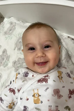 София — малышка 6 месяцев, наполовину русская, наполовину японка. У неё необычная внешность и выразительная мимика: особенно активно «разговаривают» брови, передавая эмоции без слов. Уже стоит на четвереньках, перекатывается, уверенно держит вещи в руках и с радостью плавает в бассейне — не боится воды и любит движение. Очень наблюдательная, живая и общительная с самого раннего возраста.